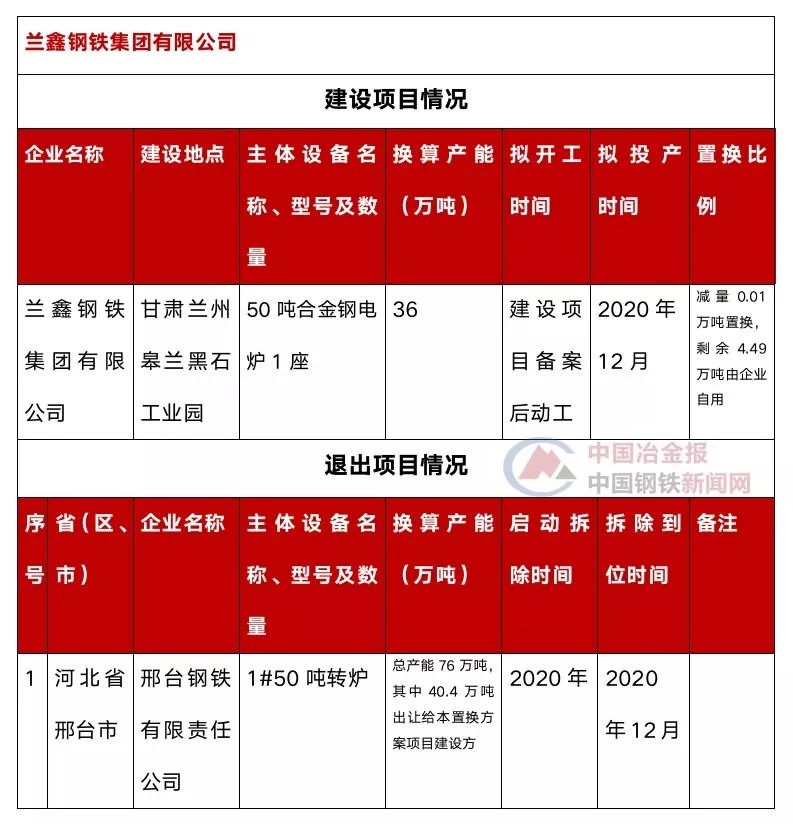 承接邢钢产能,甘肃兰鑫钢铁拟新建50吨电炉1座