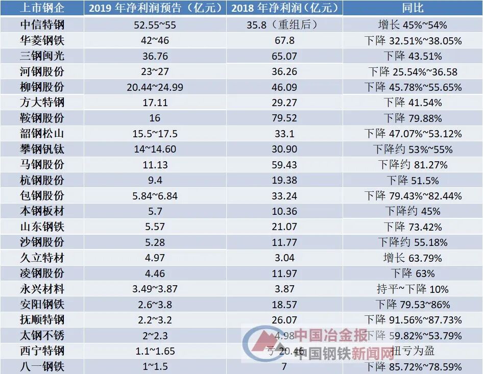 23家上市钢企2019年业绩普现下滑 最高预计下滑超过90%